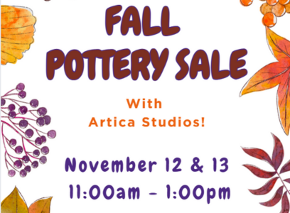 Join Artica for their annual pottery resale! Buy unclaimed pottery for $2-5 while supplies last!